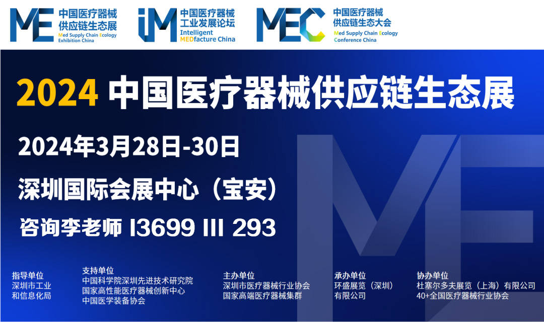 為加快推動(dòng)我國醫(yī)療器械產(chǎn)業(yè)高質(zhì)量發(fā)展, 打造高端醫(yī)療器械產(chǎn)業(yè)集群高地, 推動(dòng)先進(jìn)裝備及制造業(yè)賦能醫(yī)療器械供應(yīng)鏈升級(jí), 深圳市將于 2024年3月28日 -30日在深圳國際會(huì)展中心(寶安)舉辦 "2024中國醫(yī)療器械供應(yīng)鏈生態(tài)展”。