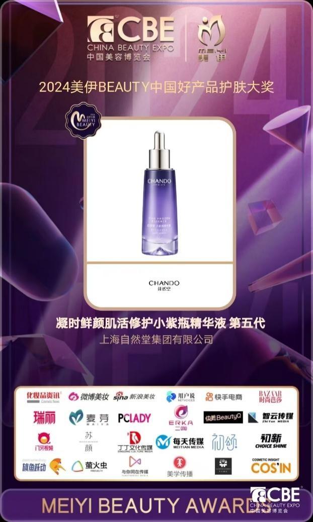 2024美伊BEAUTY年度美妝大賞暨頒獎(jiǎng)盛典上,zirantang集團(tuán)董事長(zhǎng)兼總裁鄭春穎先生榮任2024CBE日化品牌聯(lián)盟主席團(tuán)副主席。zirantang凝時(shí)鮮顏肌活修護(hù)小紫瓶精華液第五代榮獲2024美伊BEAUTY中國(guó)好產(chǎn)品護(hù)膚大獎(jiǎng)·年度抗老再生精華,zirantang極地精華露榮獲2024美伊BEAUTY·護(hù)膚類抗老精華TOP大獎(jiǎng)。