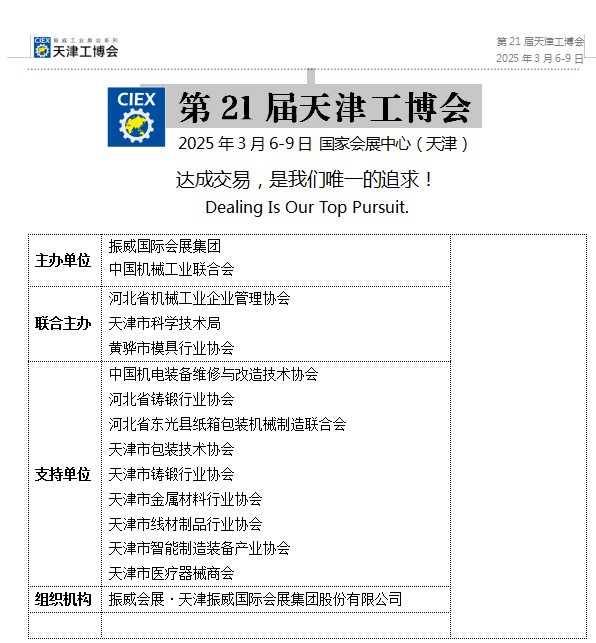 讓我們滿懷著憧憬與期待,一同期許天津工博會在未來能夠持續不斷地書寫輝煌篇章,繼續為全球工業發展締造更多的精彩與奇跡。讓我們共同見證工業領域在時代的浪潮中不斷創新、不斷突破,向著更加輝煌燦爛的明天奮勇前行。