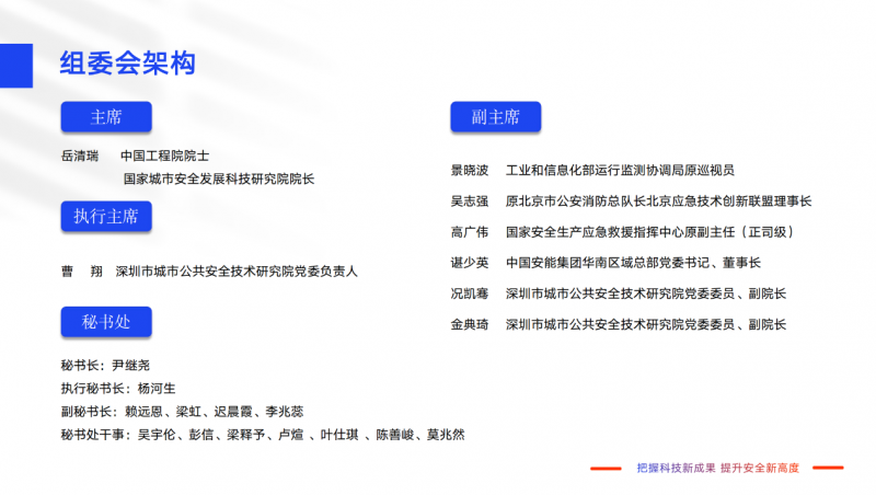 指導(dǎo)單位:廣東省應(yīng)急管理廳、深圳市突發(fā)事件應(yīng)急委員會(huì)辦公室、深圳市發(fā)展和改革委員會(huì)、深圳市工業(yè)和信息化局、深圳市科技創(chuàng)新局、深圳市應(yīng)急管理局、深圳市商務(wù)局(深圳市保稅區(qū)管理委員會(huì))、深圳市投資促進(jìn)局、深圳市消防救援支隊(duì)