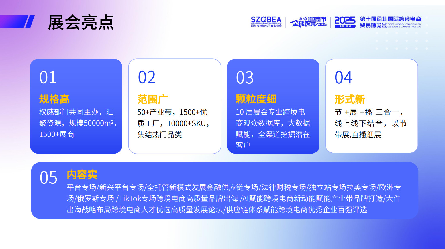 2025年第十屆深圳國際跨境電商貿易博覽會無疑是一個不容錯過的行業盛會。它不僅是跨境電商企業展示自我的舞臺,更是一個交流思想與經驗、開拓市場與合作機會的重要平臺。隨著這一盛會的臨近,我們誠摯邀請各界朋友前來參觀、交流和合作,共同推動全球跨境電商事業的發展。