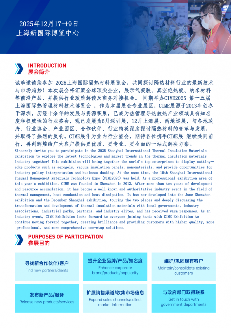 請于2025年11月30日前掃描附件二維碼完成注冊。期待與您共同探索"雙碳"目標下的隔熱材料創新應用!