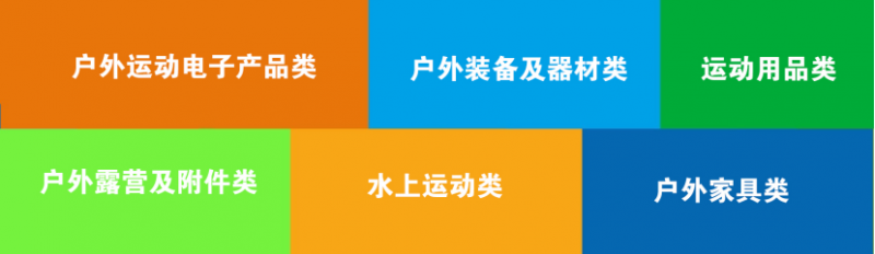 3、戶外露營及附件類展區(qū):長途旅游、戶外房車、太陽能背包、登山包、急救包、指南針/定位系統(tǒng)、炊具/燃料、急救用品、應急燈、登山鞋,徒步鞋,高山靴,攀巖鞋,沙灘鞋/涼鞋、戶外休閑鞋、戶外手電筒、護具、戶外水壺、頭盔、防潮墊、地席水壺、水具爐具、燒烤爐、通訊/導航、戶外刀具、戶外表、射擊、望遠鏡、登山杖、手杖毛巾、戶外移動電源等