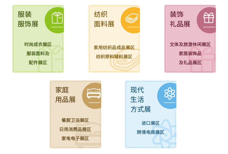 ◆家用紡織品展區(qū)——包含床上用品、居室用紡織品、衛(wèi)浴用紡織品、餐廚用紡織品、其他紡織品、紡織原料面料、紗線、抽紗品等。