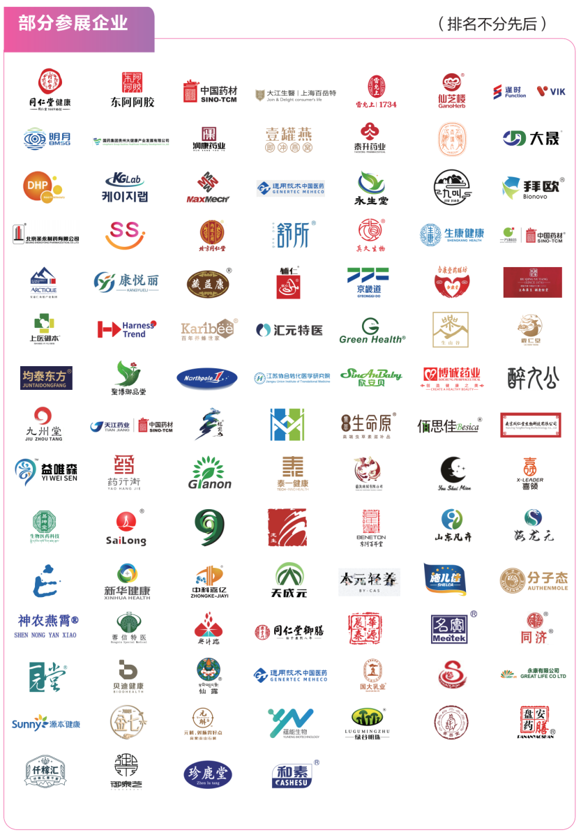 展示范圍:藥食同源、高端滋補品(燕窩、魚膠、參茸、靈芝、蟲草等),新中式滋補產品、食療產品、保健茶,保健酒,養生湯、月子餐
