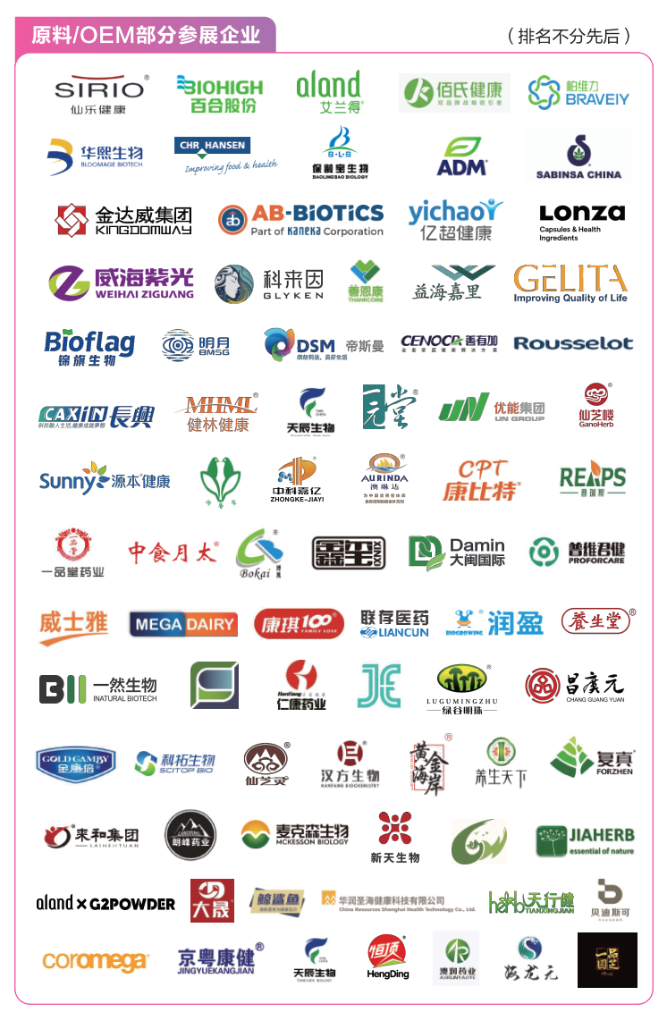觀眾構成:全國總代、省級代理/區域代理商、經銷商、進出口貿易商、零售商(連鎖藥店、高端超市、電商/跨境電商、百貨賣場、母嬰店、健康產品專賣店、健身中心、康復養老機構、電視購物等)、新零售(微商、社交電商、直播電商、社群團購等)、直銷、會銷、福利采購、企業團購、TP和MCN機構、醫院/診所、咨詢培訓機構、投融資機構、研發企業、政府/協會、連鎖藥店/單體藥店等