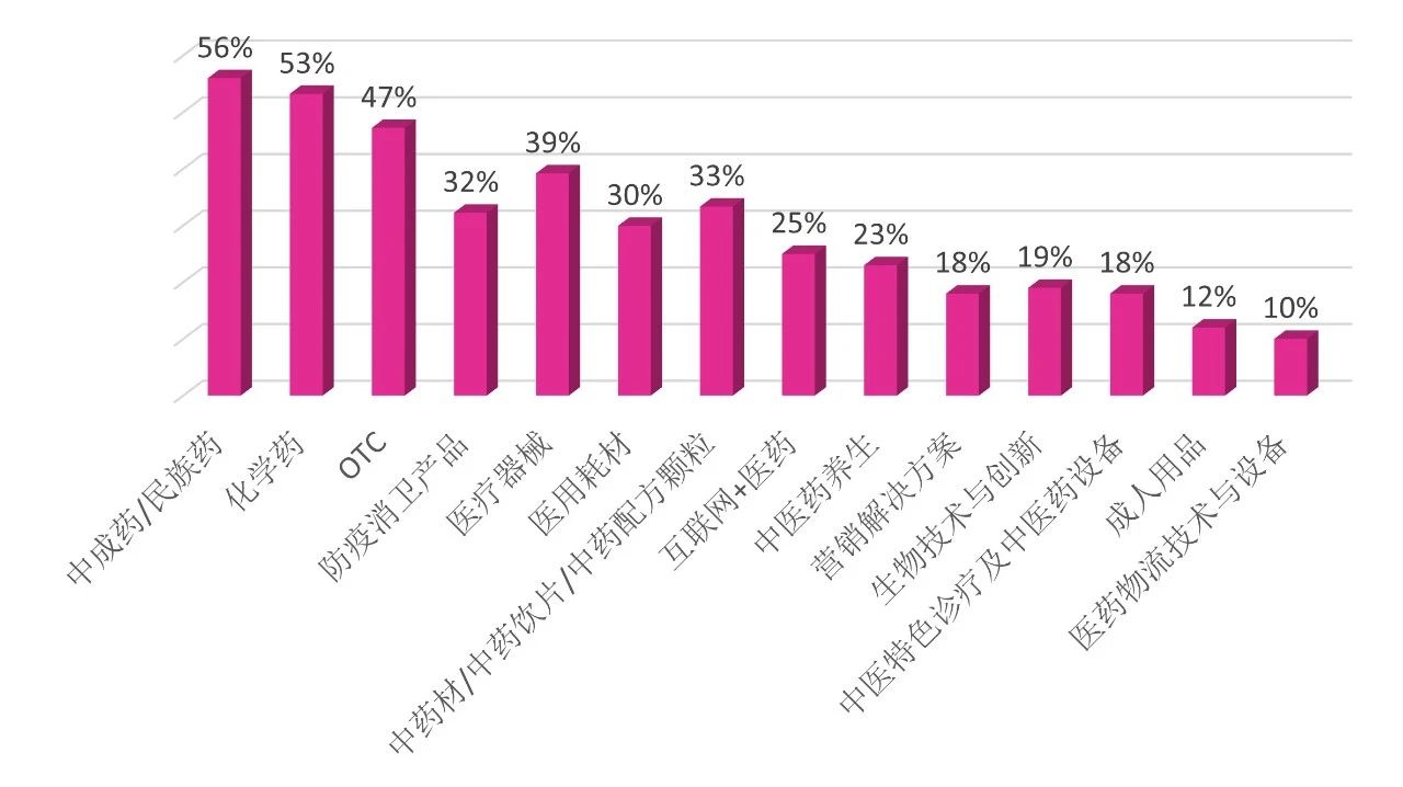 從觀眾感興趣的產品中可以發現,中成藥/民族藥、化學藥、OTC、醫療器械、中藥材/中藥飲片/中藥配方顆粒仍位列TOP 5。(如下圖)
