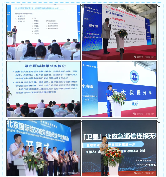 베이징 국제 비상 박람회는 재해 예방 및 비상 안전 산업의 과학 기술 혁신 성과를 집중적으로 전시하며, 지적 소방 기술 장비, 항공 구조, 원격 감지 측량, 고층 탈출, 홍수 방지 배수, 의료 응급 처치, 특수 조명, 지진 경보, 위성 응용, 비상 통신, 수역장비, 특수 차량, VR 코프, 특수 텐트, 드론 지능 로봇을 전시한다 같은 기간 중국 방재 비상안전산업 발전 포럼 개최, 중국 소방산업 과학기술 혁신 발전 포럼, 재해 시뮬레이션 체험, 자구 탈출 지식 강좌, 방재 재해 구호 코프, 협력 프로젝트 계약, 신제품 홍보 등 다채로운 교류 활동, 비상 및 안전산업 발전의 새로운 이념, 새로운 모델, 새로운 아이디어, 산업 발전 최상층 디자인 강화, 양호한 생태 환경 조성, 정기업 고급 대화, 촉진