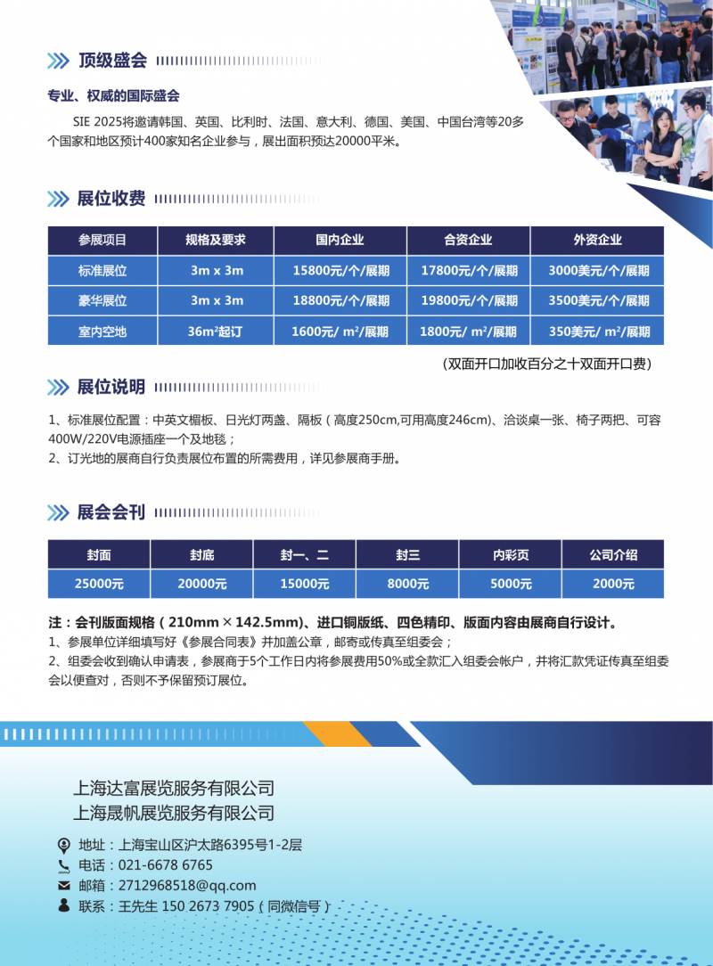 展位咨詢:聯(lián)系組委會王經(jīng)理(電話:13023285272;15026737905郵箱:1466867067@qq.com)