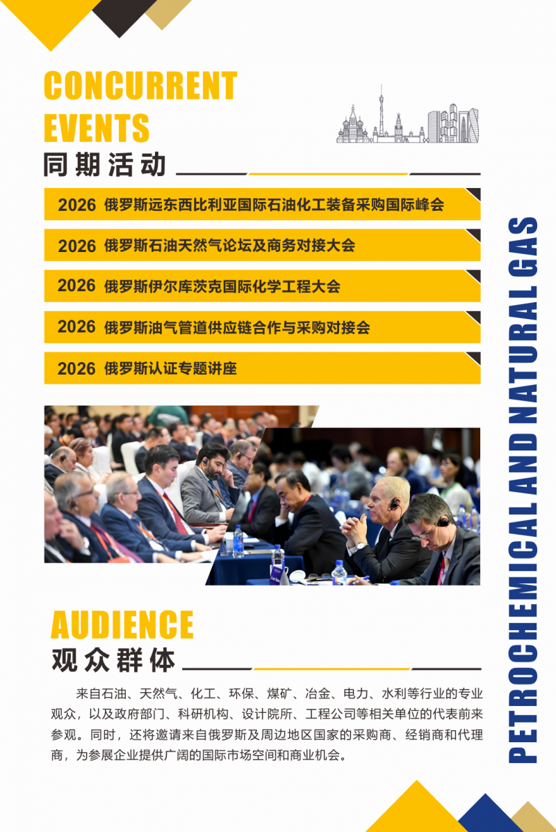 2026年6月18日至20日,一場(chǎng)石油化工及天然氣技術(shù)裝備展覽會(huì)將在俄羅斯西伯利亞出口展覽中心(伊爾庫(kù)茨克)舉辦。屆時(shí),這里將吸引全球多個(gè)國(guó)家及地區(qū)的企業(yè)參展。