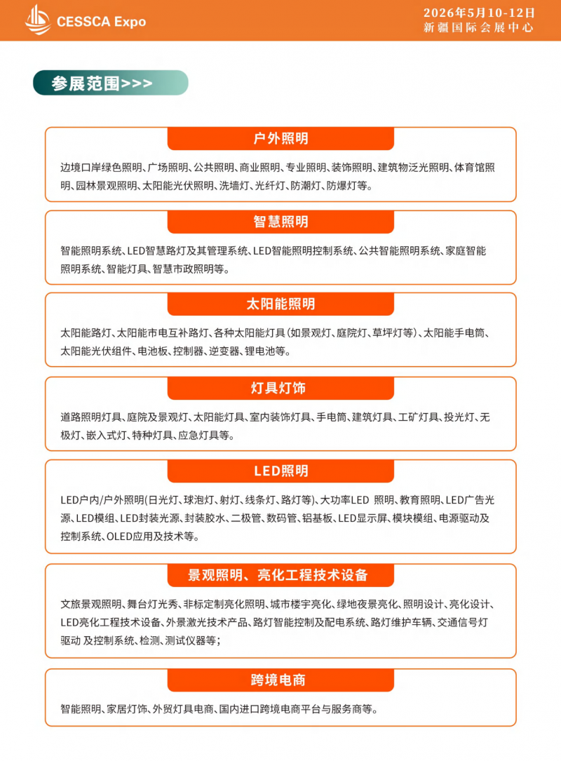 在此背景下,2026中國新疆國際戶外照明展覽會,將于5月10-12日在新疆國際會展中心隆重啟幕!為中國照明企業開辟“零時差”貿易通道,搶占中亞綠色照明新藍海!