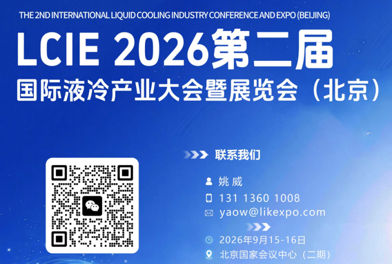 聯(lián) 系 人:姚威 聯(lián)系電話:131 1360 1008(同V)(添加微信時(shí)請(qǐng)備注:液冷大會(huì))電子郵箱:yaow@likexpo.com大會(huì)地址:北京國(guó)家會(huì)議中心(二期)大會(huì)時(shí)間:2026 年 9 月 15-16 日