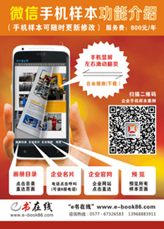 “e書在線“微信手機樣本專業推廣平臺,“電子書”PC端在線免費發布。 戰略合作伙伴:浙江省泵閥行業協會