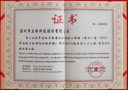 CPCA正式發(fā)布2018年最新PCB百強(qiáng)排行榜! 五株科技穩(wěn)中有進(jìn),進(jìn)中向好!
