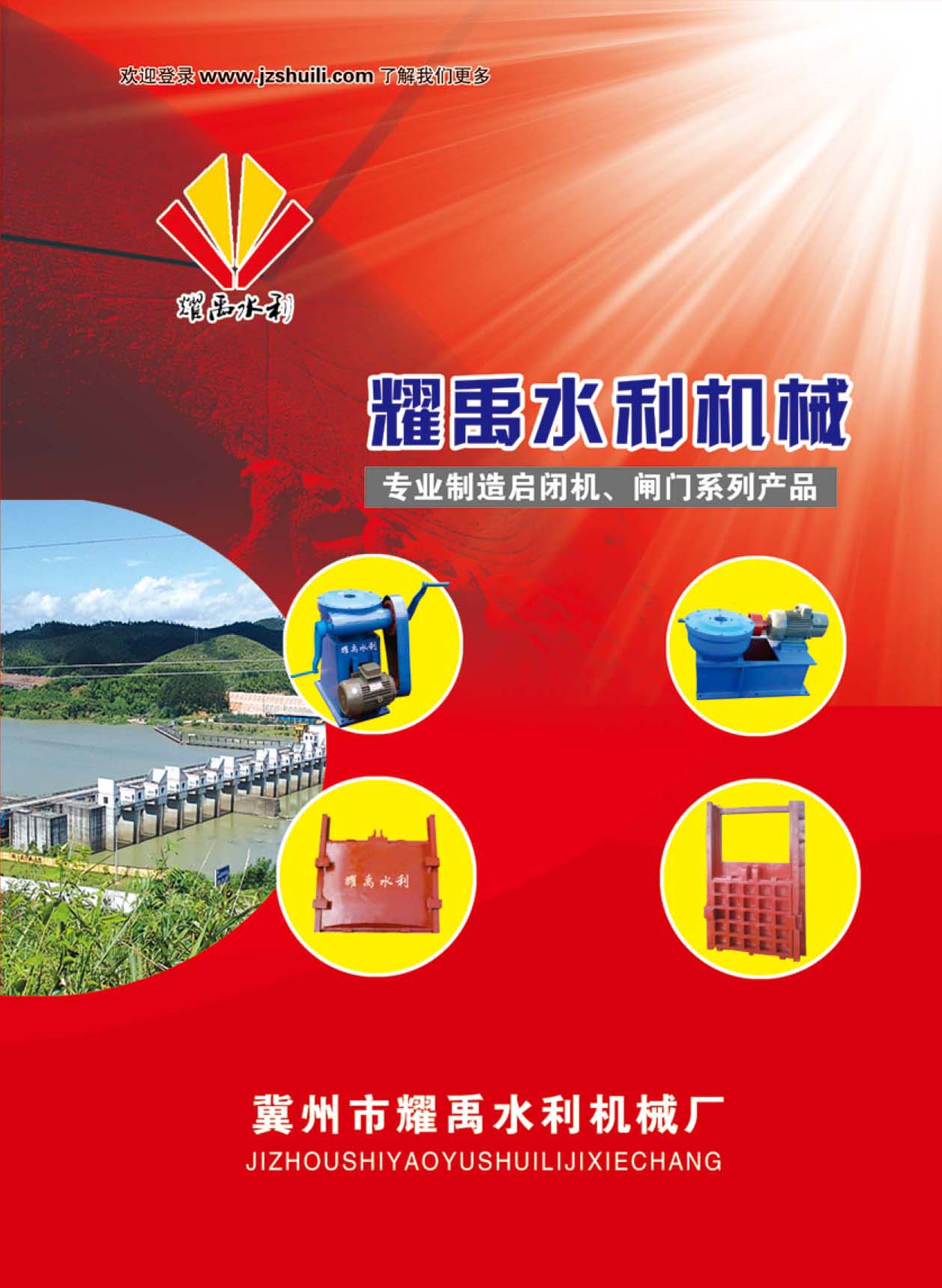主要產(chǎn)品有(一)螺桿手搖式啟閉機3t-30t:手推帶鎖式、全封閉式0.3-5t,螺桿側(cè)搖式0.5-5t,手電兩用式螺桿啟閉機3t-100t(單、雙吊點)。(二)qpq、qpk、qpg、qhq單吊、雙吊點、移動卷揚式啟閉機6-100t。(三)鑄鐵閘門、高壓鑄鐵閘門、球墨鑄鐵閘門、鎳鉻合金鑄鐵閘門、鑲銅鑄鐵閘門、拍門、潮門、鋼制閘門、不銹鋼閘門等。(四)各種規(guī)格止水橡皮及伸縮縫橡膠帶。