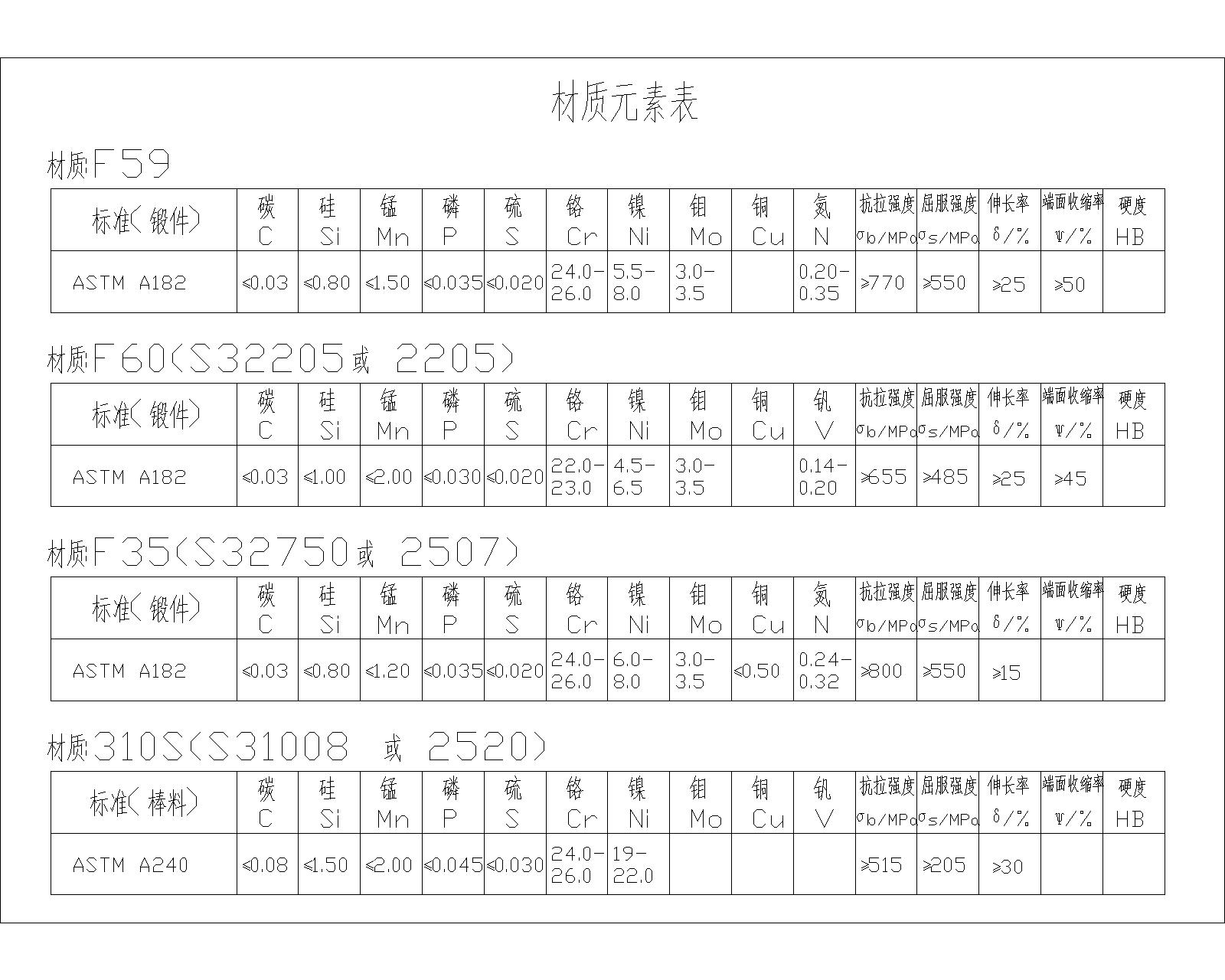 閥門F59.F60.F35.310S材質元素表
